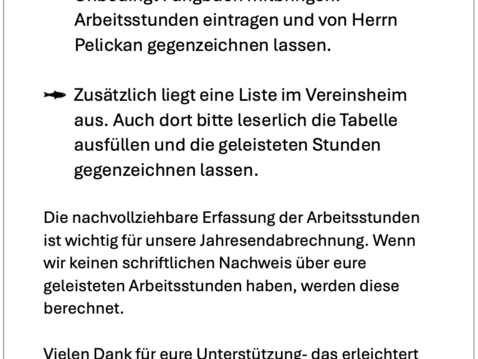Die Abstimmung der Arbeitseinsätze erfolgt telefonisch mit Herrn Pelickan.